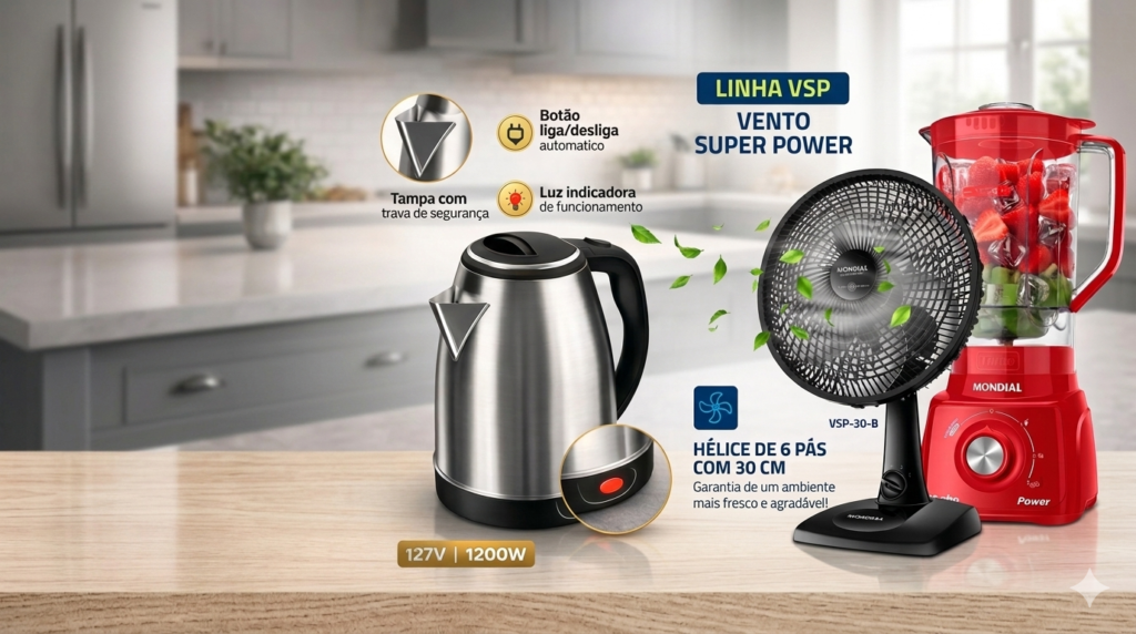 Após uma análise detalhada do ventilador Mondial, da chaleira elétrica Atacama e do liquidificador Mondial Turbo Power, podemos observar que cada um desses eletrodomésticos possui características distintas que atendem a diferentes necessidades dos consumidores. O ventilador Mondial se destaca pela sua eficiência em promover um ambiente fresco, especialmente em dias quentes, oferecendo uma boa relação custo-benefício com suas múltiplas velocidades e baixo consumo de energia.